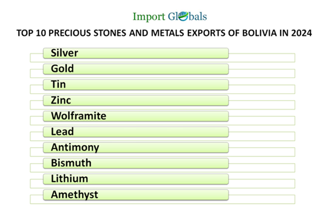 TOP EXPORTED PRECIOUS STONES AND METALS FROM BOLIVIA