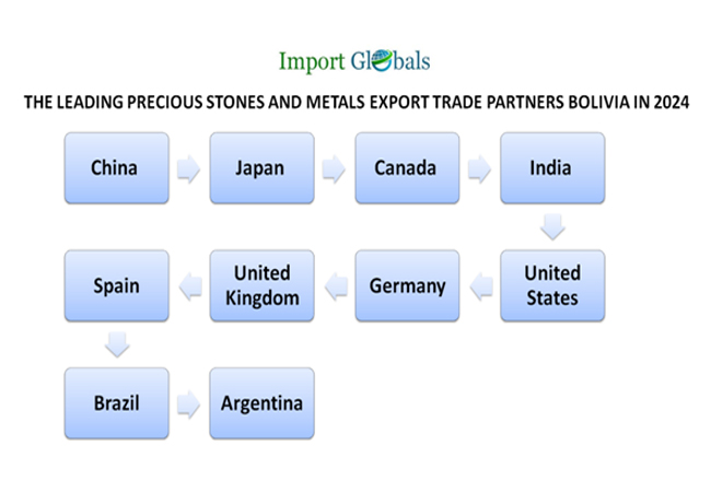 • Japan – As per the Japan Import Data, valuation of the precious stones and metals exported from Bolivia in 2024 –821 million US dollars.