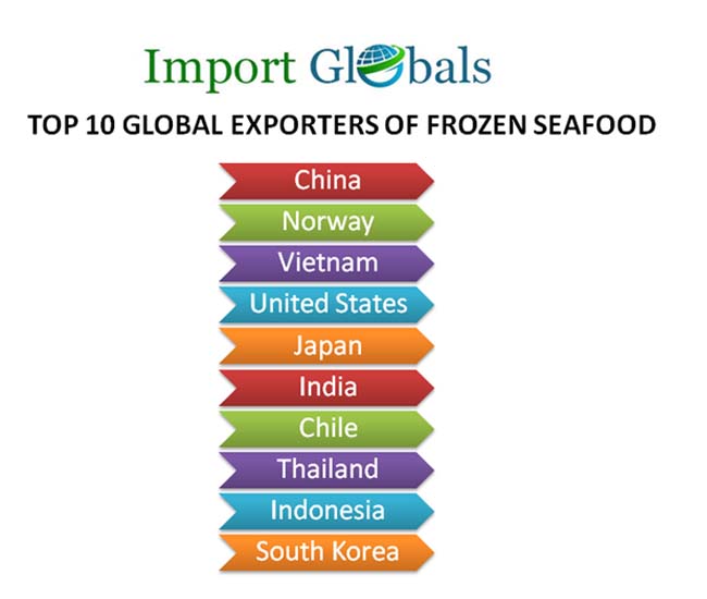 • China – China right now is one of the largest seafood producers worldwide with advanced processing techniques. The manufacturing industries often used to soak the fresh seafood in additives like Sodium Triphosphate to increase its shelf life. The total export trade value of frozen seafood in 2023 from China is 22 billion US dollars.