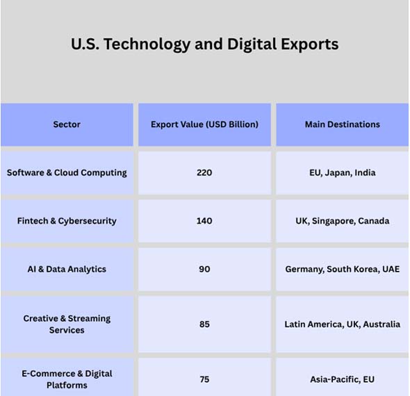 The US digital economy has an impact on trade, business, and communication all around the world. This comprises big tech companies in Silicon Valley, cloud infrastructure providers, software developers, and new firms that use AI. The U.S. used to send a lot of things to other countries, but now it is the world leader in digital trade and technology exports as businesses gravitate toward data-driven business.