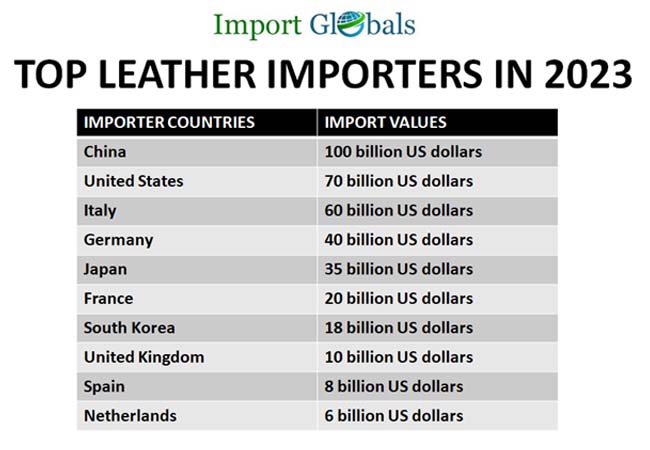 - Spain – According to the Spain Customs Data, the valuation of leather imports in Spain in 2023 is 8 billion US dollars.