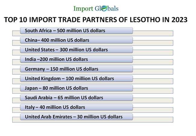 • South Africa – According to the South Africa Export Data, the valuation of Lesotho imports in 2023- 500 million US dollars.