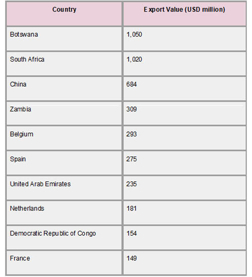 Que. Which countries are the main destinations for Namibia’s exports?
