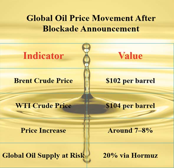 The United States set up a naval blockade in April 2026 to limit Iranian oil exports through the Strait of Hormuz, which is one of the most important energy transit routes in the globe. This caused a lot of trouble in the global energy markets.