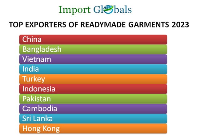 • China – As per the China Export Data, the export trade value of readymade garments in 2023 is 320 billion US dollars.