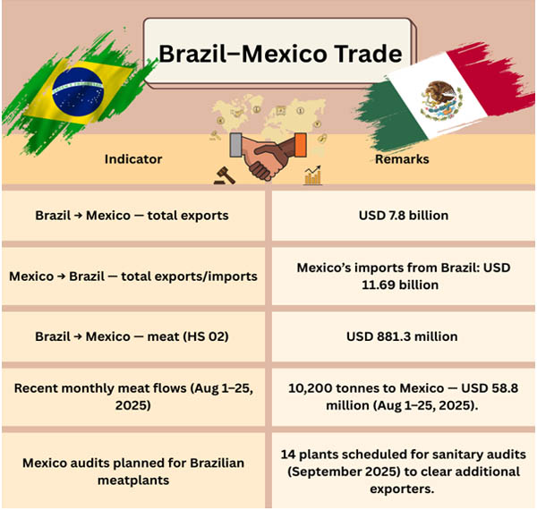 Results of a Sanitary Audit (September 2025): The quantities of the meat trade in the near future will be directly impacted by the list of authorized Brazilian meatpacking facilities to export to Mexico.