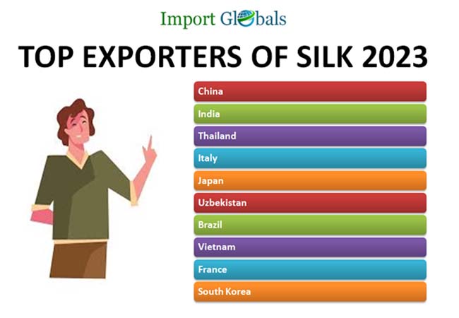 • China – According to the China Export Data, the export trade value of silk from China in 2023 is 6 billion US dollars.