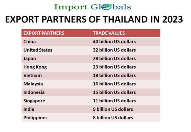 • United States - The export trade value of the products exported from Thailand to the United States – is 32 billion US dollars.