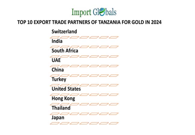 Ans. Switzerland is the top export trade partner of Tanzania for gold exports in 2024.