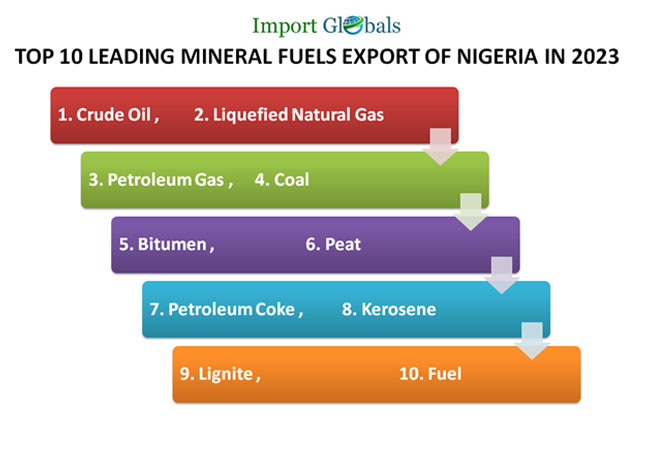 The diversification in the mineral fuels export trend of Nigeria has been leading in a positive aspect. According to the Nigeria Export Data, the top 10 leading mineral fuels export of Nigeria in 2023 are,