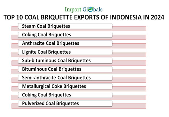 Ans. Steam coal briquettes are the top coal briquettes export variant of Indonesia in 2024.