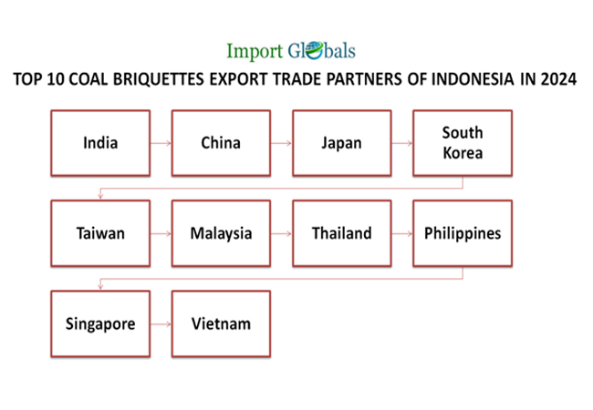 Que. Name the top coal briquettes export trade partners of Indonesia in 2024?