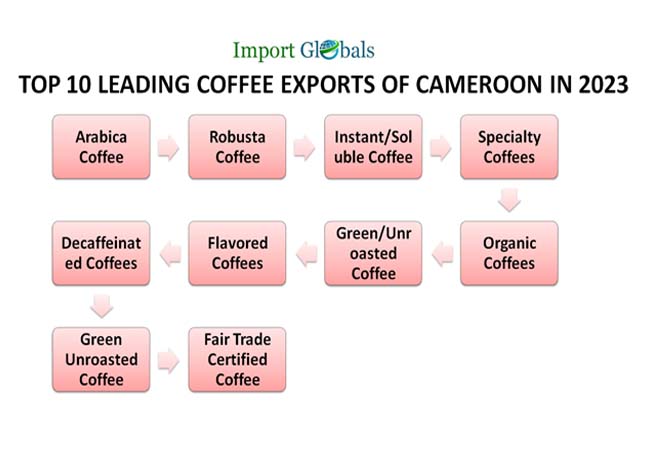 According to the Cameroon Import Data, the top 10 leading coffee exports of Cameroon in 2023 are,