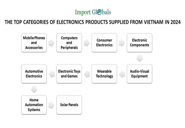 Ans. Mobile Phones and Accessories are the top electronic products supplied from Vietnam in 2024.
