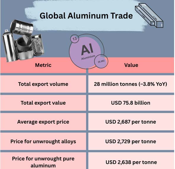 Because of its strength, durability, and ease of recycling, it has become indispensable in a variety of sectors, including electronics, automotive, aerospace, packaging, and construction. Some countries have become major exporters as a result of rising global demand, affecting industrial supply networks and trade flows.
