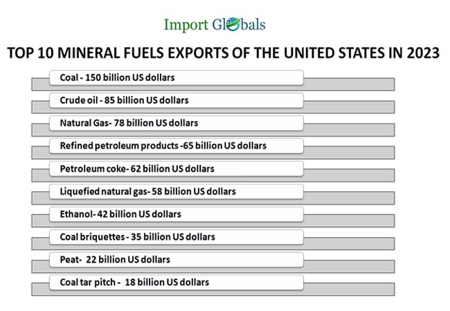 Ans. Coal is the top mineral fuel export of the United States in 2023.