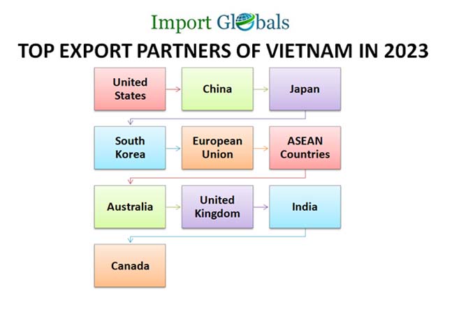 The Vietnam Export Customs Shipment Data enlists the below-mentioned as the top 10 export destinations of Vietnam in 2023