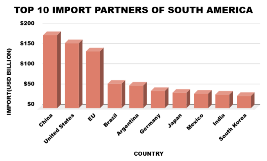 From the Andes Mountains on the western border to the Amazon Rainforest in the north, South America is a huge continent with a varied topography. Its strategic location makes it an essential hub for international trade, particularly with adjacent regions like North America, Europe, and Africa, according to South America Import Data Import Globals. Geographically, because of their proximity and related industries, nations like Brazil, Argentina, Chile, and Peru have robust supply chains and commercial relations within the continent. The greatest economy in South America, Brazil, is intimately connected to nations like Argentina for agricultural products, Chile for copper, and Peru for mineral resources. It is a major supplier of oil, soybeans, and iron ore according to South America Export Data.